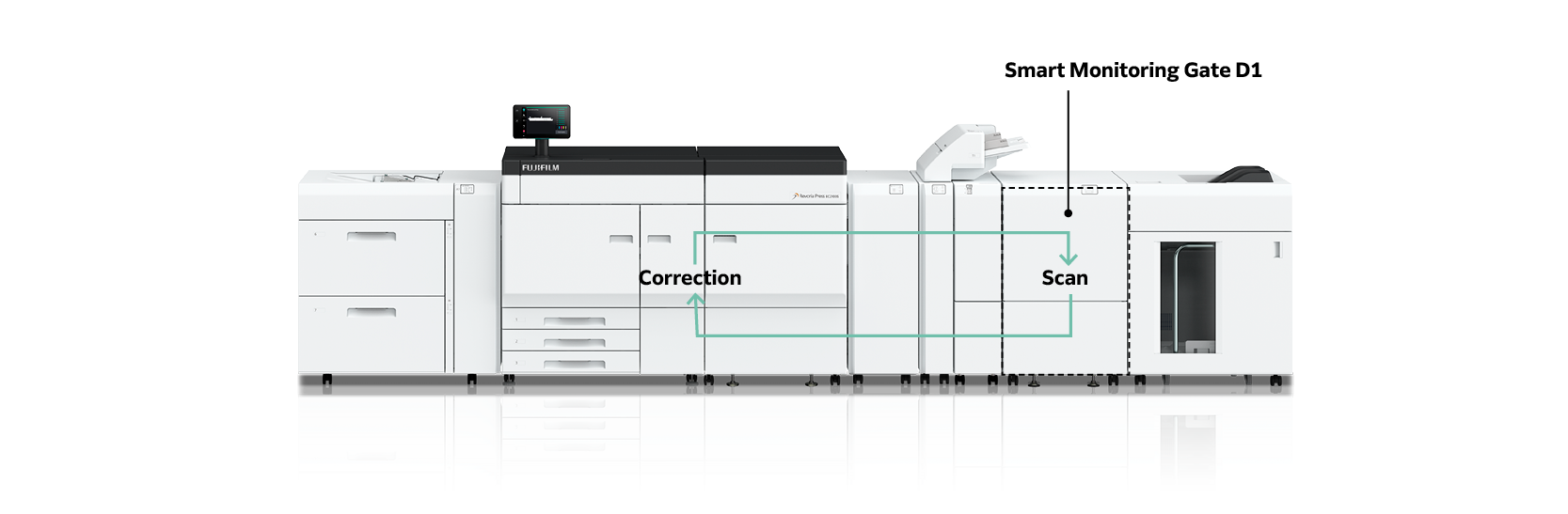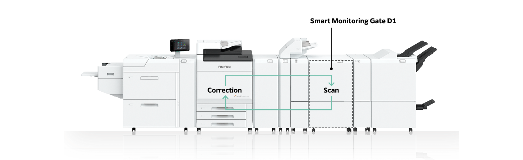And because the system detects issues with registration and colour consistency early in the printing process, fewer sheets go to waste and less ink is used. The result is a simpler, more cost-effective and sustainable approach to printing. Importantly, the Smart Monitoring Gate performs its measurements and corrections on the fly so the print speed remains virtually unaffected.